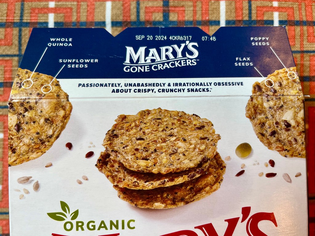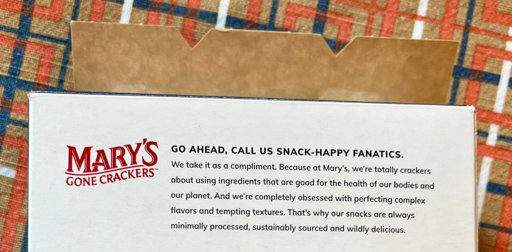 One of the drawbacks about working from home is that we only buy healthy snacks. Missing the office’s ultra-processed offerings, I pushed past our wide selection of nuts and reached for the colorful box all the way in the back. It was something called “Mary’s Gone Crackers.” I immediately felt affronted by the box. Who is this Mary, and is she getting the psychological help she needs? No idea. All I could find was this: “Go ahead, call us snack-happy fanatics. Because at Mary’s, we’re totally crackers about using ingredients that are good for the health of our bodies and our planet.”